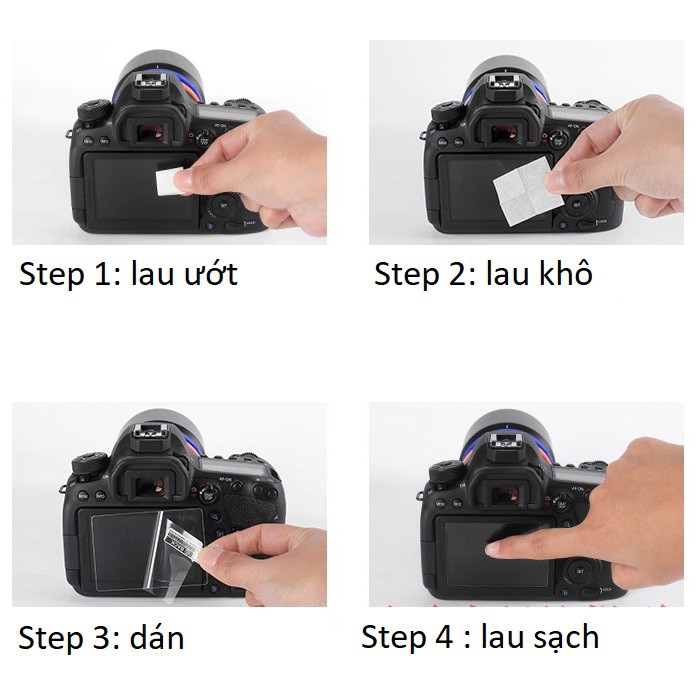* Đặc biệt: vì không sử dụng keo dán nên không gây tổn hại cho màn hình LCD của máy ảnh