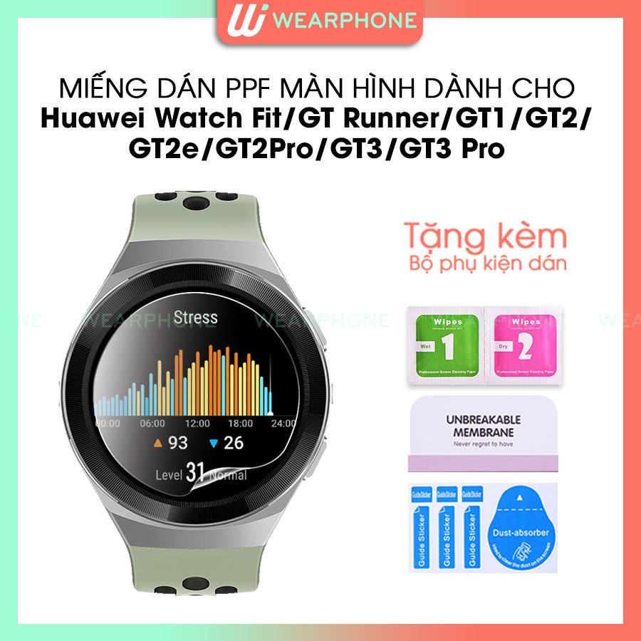 Dán Màn Hình PPF Đồng Hồ Thông Minh Huawei Watch GT Fit GTRunner GT1 2 2e 3 Pro GT3 Pro Band Cường Lực Dẻo Size 42 46mm Wearphone* Chất Liệu NTPU PPF Film Dẻo Nhập Khẩu Có Độ Đàn Hồi và Chống Va Đập