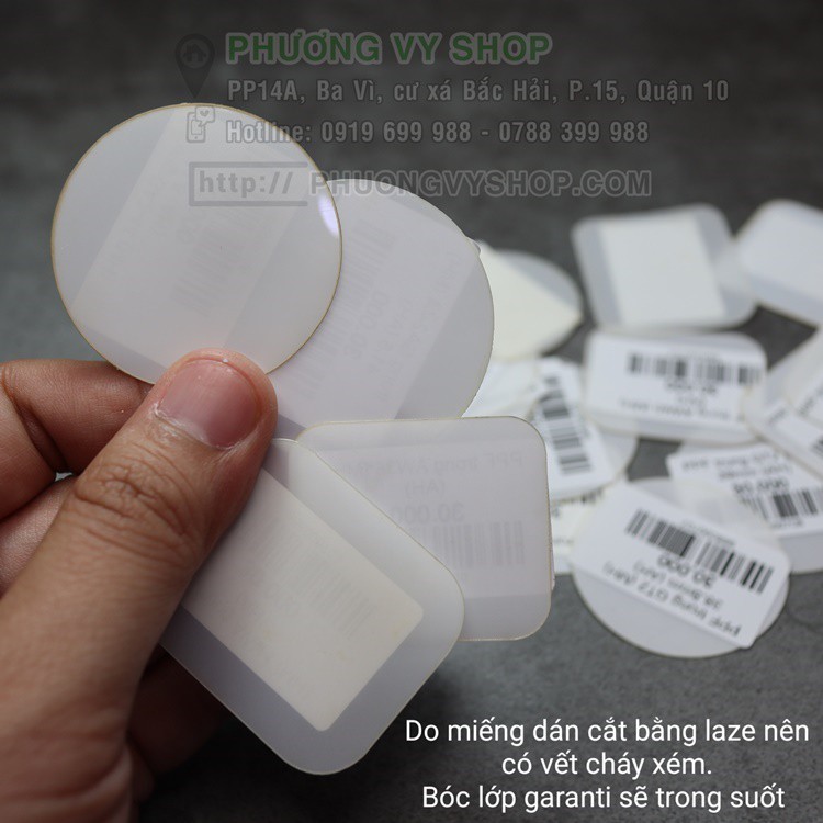 Đôi khi miếng dán bên ngoài nhìn màu vàng ố, nhưng khi tháo lớp garanti xong thì miếng dán trong suốt bạn nhé, không phải cũ đâu ạ, đó là do vết cháy xém của máy cắt laze.