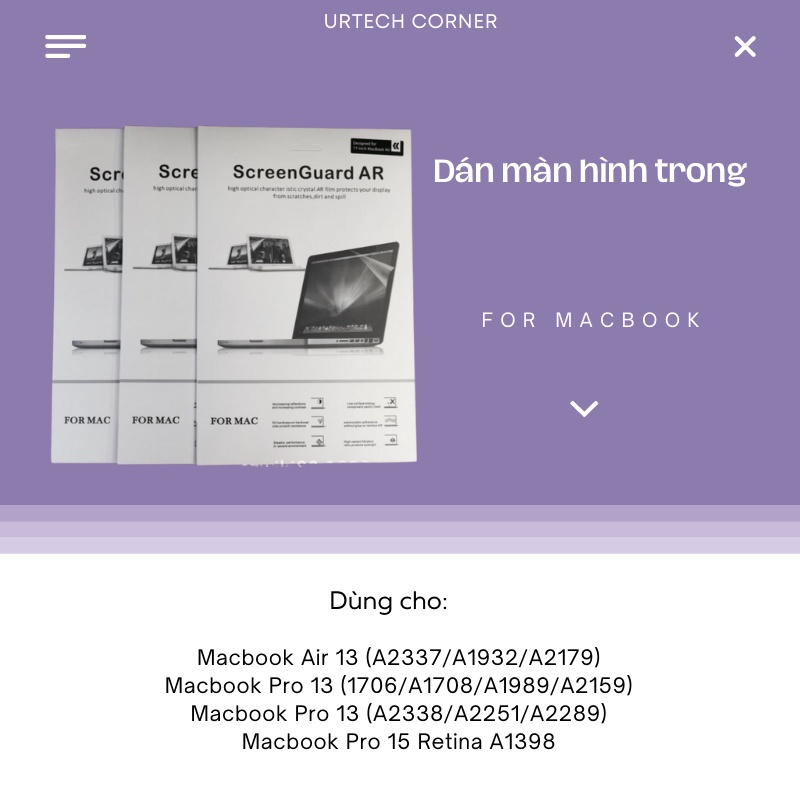 Giới thiệu Dán màn hình trong Urtechcorner dành cho Macbook Air 13/Macbook Pro 13/Macbook Pro 15 Retina