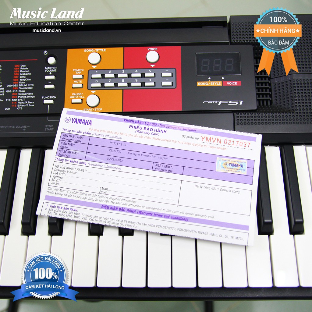 - Cam kết Đàn Organ Yamaha PSR F51 chính hãng Yamaha.