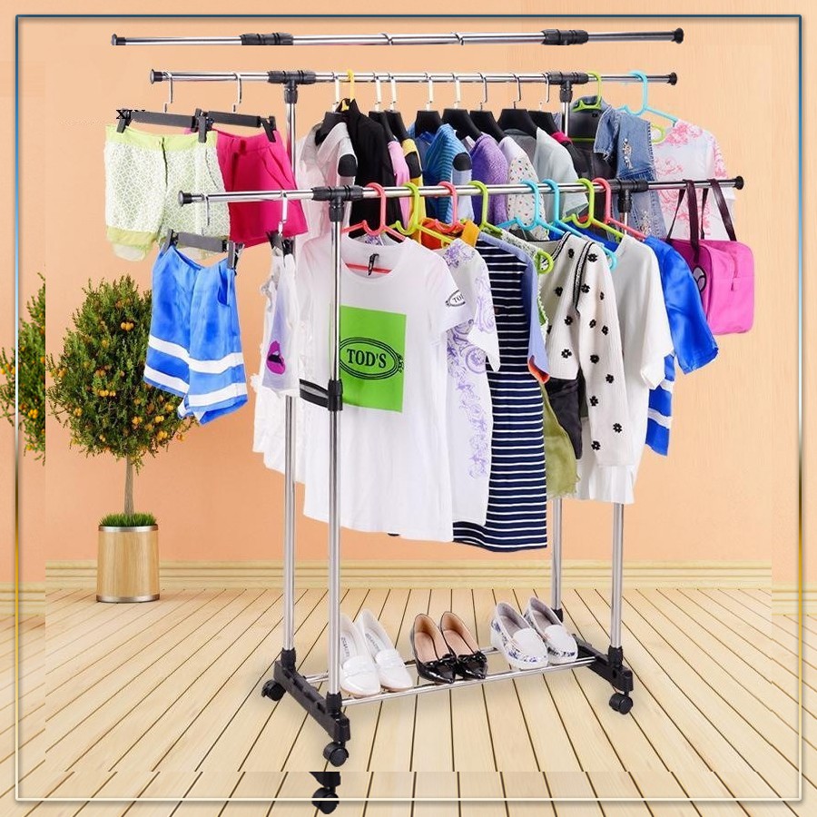 Nhà cửa & Đời sống > Dụng cụ chăm sóc nhà cửa > Dây phơi & giá phơi quần áo || Dàn phơi quần áo có bánh xe di chuyển loại 2 tầng inox tặng bàn chải trẻ emCòn hàng