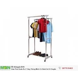 Dàn phơi quần áo inox 2 tầng thông minh có bánh xe đi chuyển