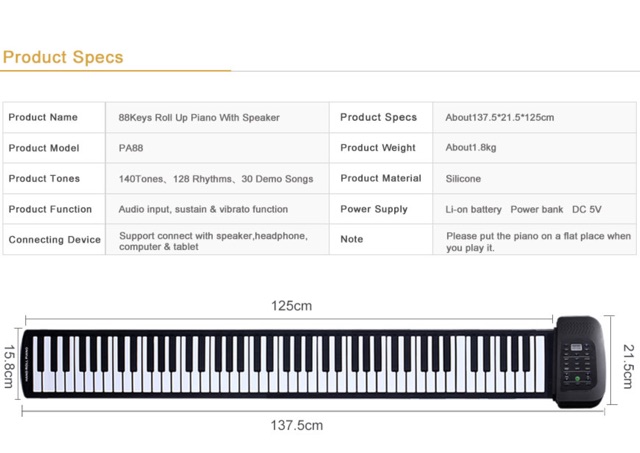 1,88 tiêu chuẩn phím như piano thật (bao gồm các phím màu đen)