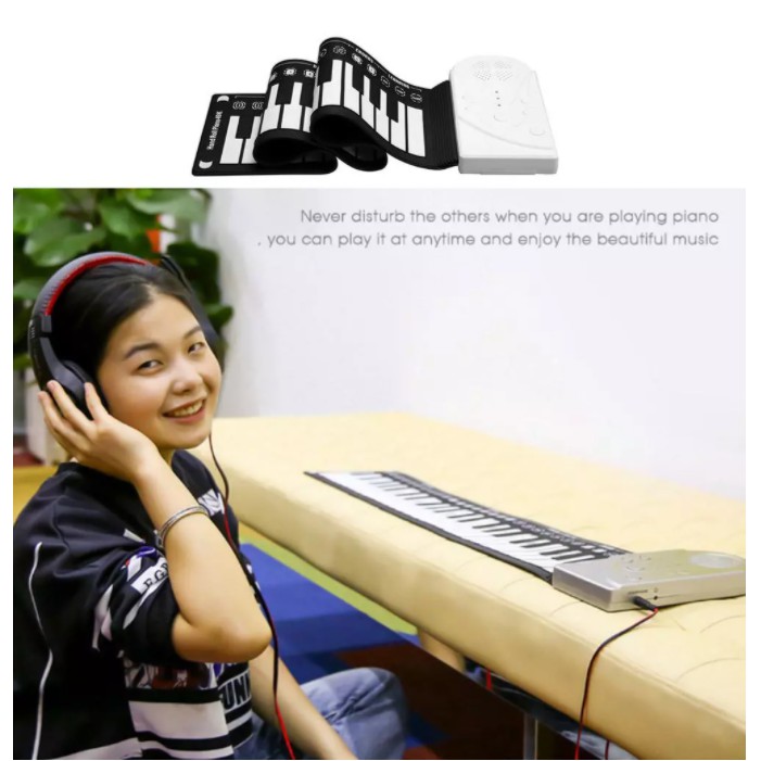 Đàn Piano Điện Tử Cuộn Dẻo 49 Phím - Chất Liệu Silicon - Chống Nước - Sử Dụng Nguồn Hoặc Pin Tiện Dụng - Bảo Hành 6T