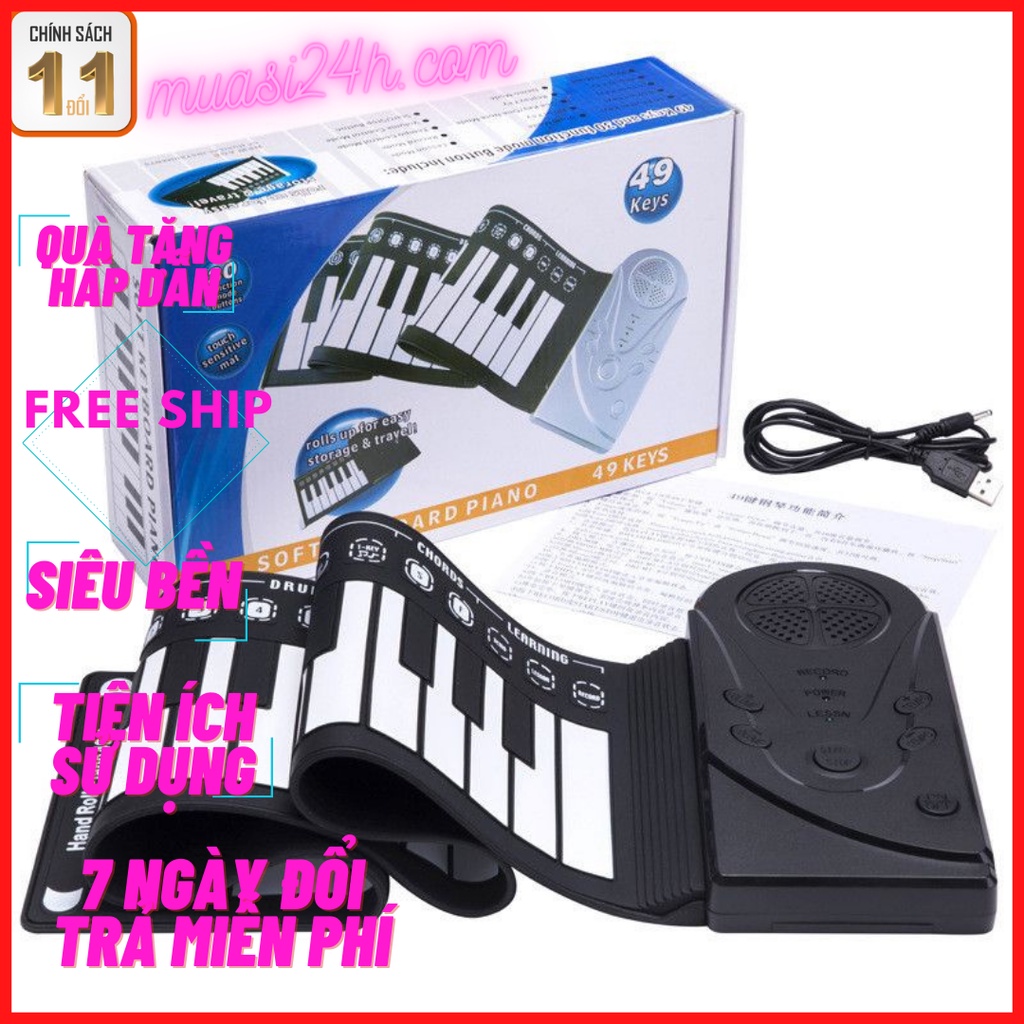 Sở thích & Sưu tầm > Nhạc Cụ & Phụ Kiện > Đàn Piano & Organ || Đàn Piano điện tử cuộn dẻo 61 phím/49key cao su cắm điện hoặc chạy bằng pinCòn hàng