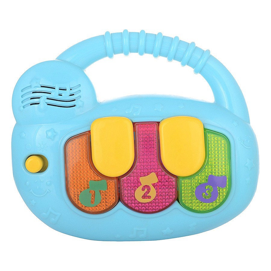 - 3 phím đàn có đèn sẽ phát ra âm thanh cùng ánh sáng nhiều màu mỗi khi bé nhấn phím. Ánh đèn không chỉ tạo hứng thú cho bé khi chơi mà còn hoàn thiện thị giác non nớt của bé.