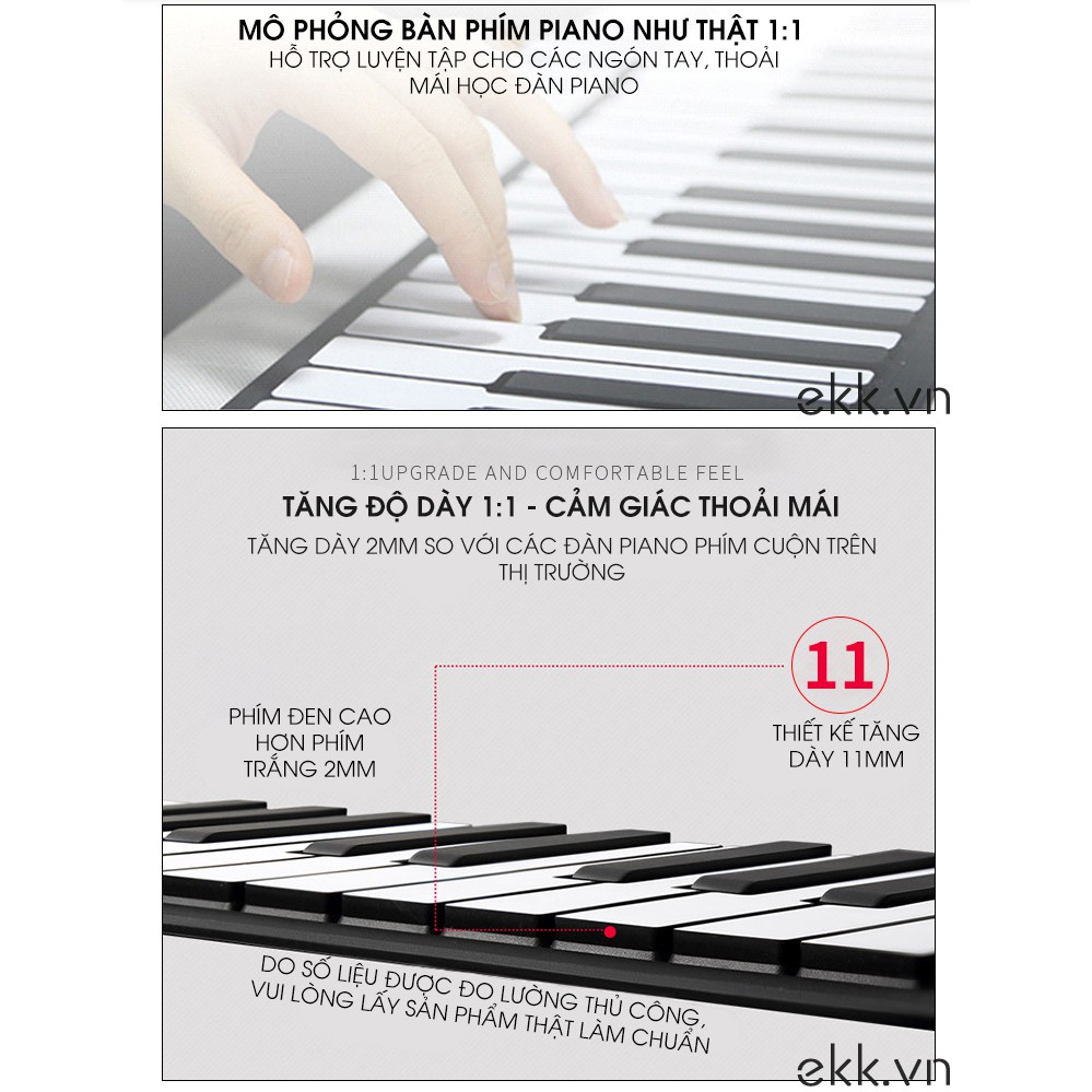 Thiết kế nhỏ gọn dễ dàng cuộn lại để cất giữ hay mang theo bên mìnhCó 49 phím đàn & 30 phím chức năng cho bạn lựa chọn với chỉ dẫn dễ hiểu, dễ quan sát và sử dụng.