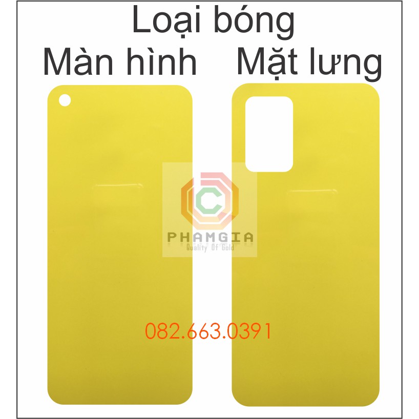 Dán PPF Oppo A54 (4G/5G) loại nhám, bóng dành cho màn hình, mặt lưng, mặt lưng full viền