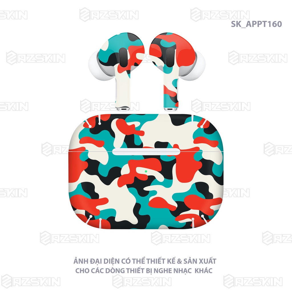 Dán Skin Hình Airpod 1/2/Pro Thiết Kế Camo Xanh Cam Trắng |SK_APPT160| Chất Liệu PVC Chống Nước, Bền Màu, Cắt Sẵn Khuôn
