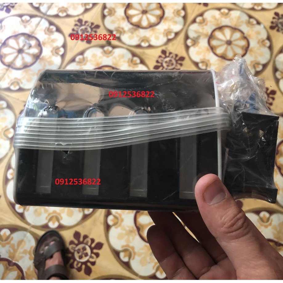 2, Lắp bộ tiếp mực ngoài vào (Bộ tiếp mực ngoài bao gồm: 4 bình chứa mực, dây dẫn mực, Gioăng nhựa, mấu nối, khoan, giấy hướng dẫn các đi dây và reset mực…)