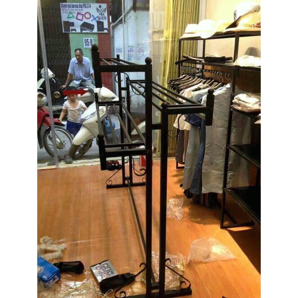 Sản phẩm được sơn tĩnh điện có độ bền caoDàn cao 1.4m dài 1,5m treo đồ hai bên tiện lợi cho shop