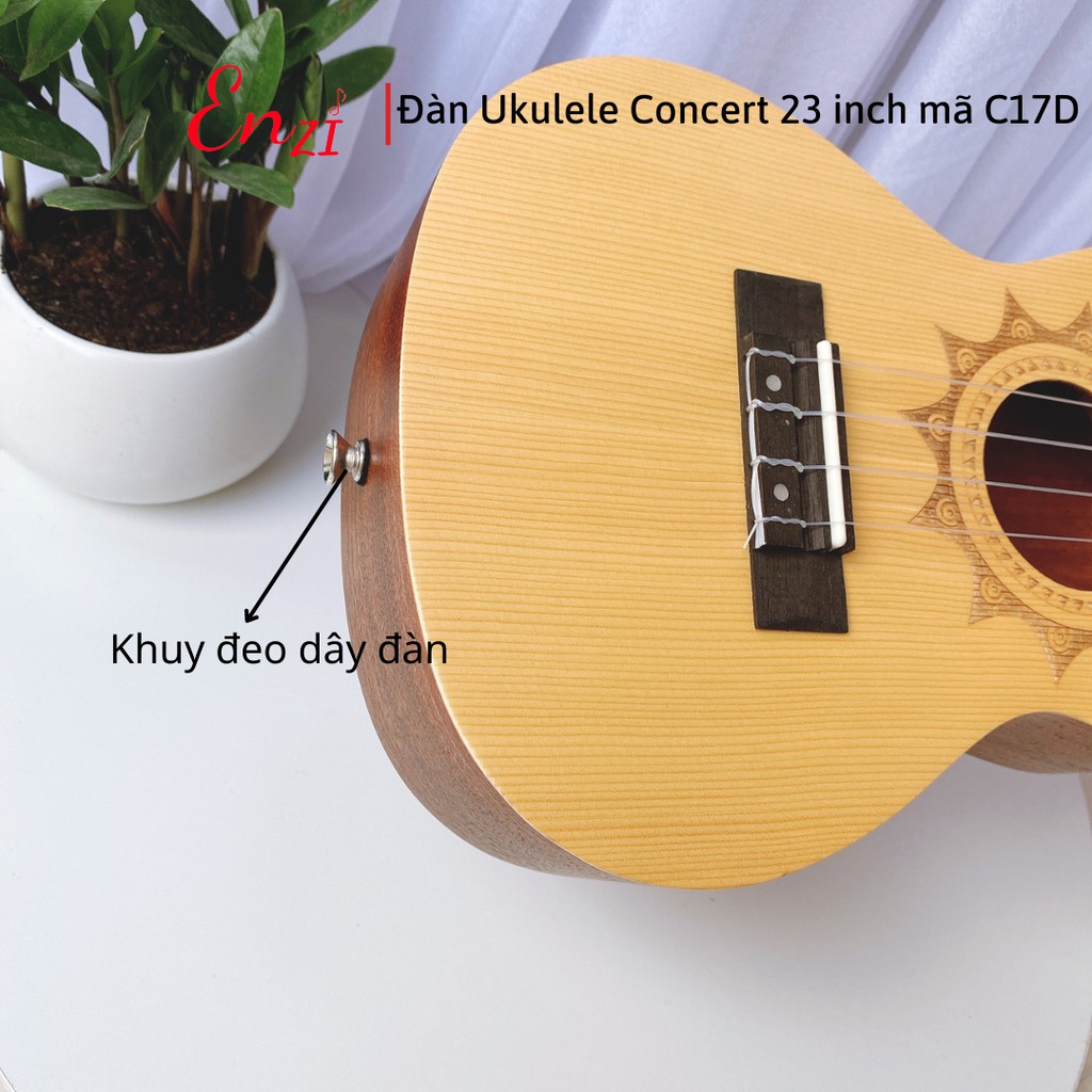 Đàn ukulele concert 23 inch Enzi C17D Viền hoa mặt trời với khóa đúc cao cấp và kèm khuy đeo dây tiện lợiĐàn ukulele concert 23 inch gỗ guitar mini nhỏ gọn, dễ dàng mang đi chơi
