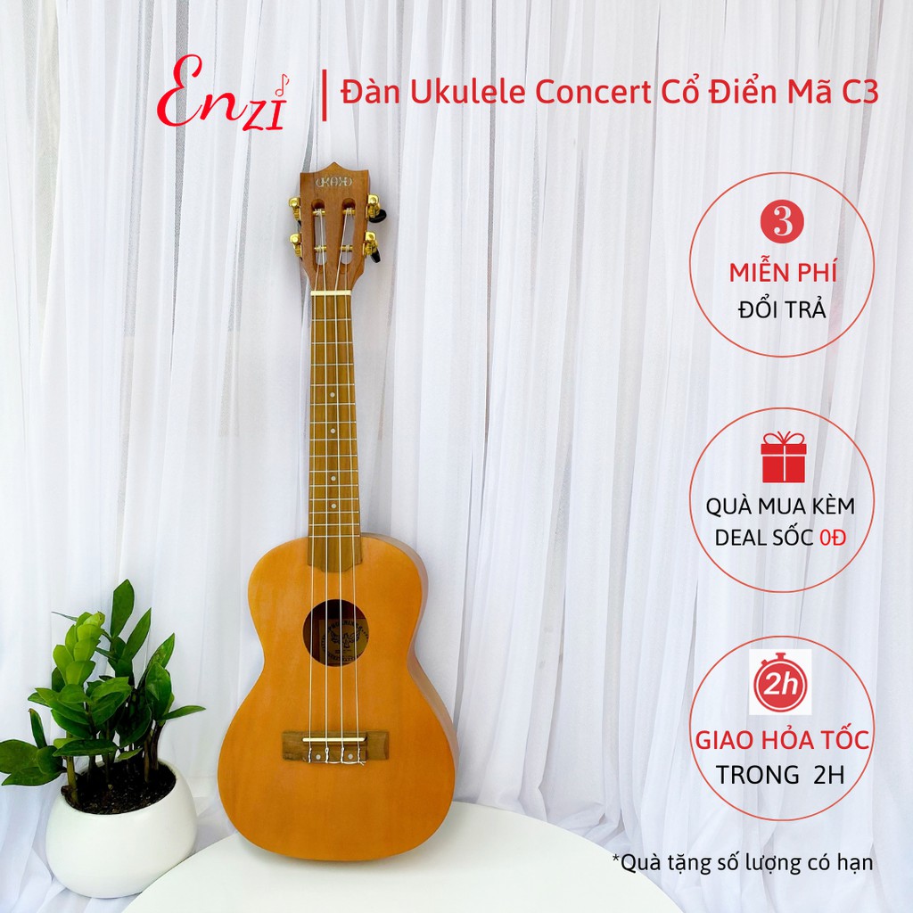 Đàn ukulele concert size 23 mã C3 Enzi kiểu dáng cổ điển khóa xịn, chất lượng âm thanh tuyệt hảo
