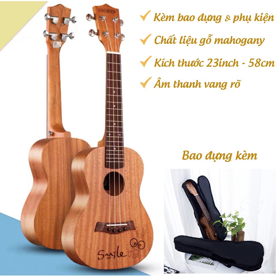 Đàn Ukulele Concert Size 23inch Gỗ Kèm Bao Đựng Đàn Và Full Phụ Kiện