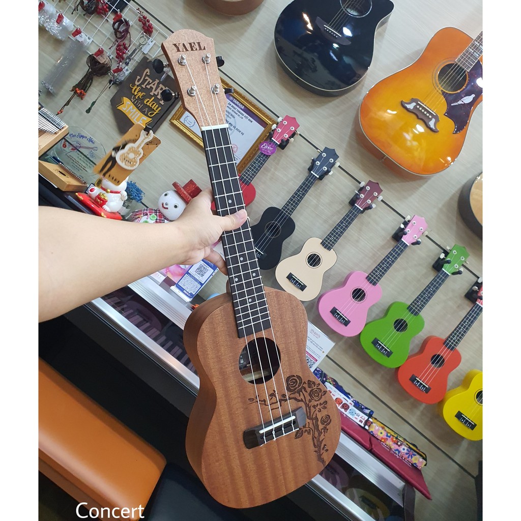 Giới thiệu Đàn Ukulele Gỗ chính hãng Yael size Concert - HOA HỒNG