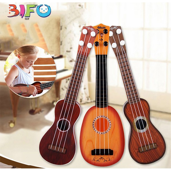 - Đàn Ukulele đồ chơi màu nâu cam xinh xắn sẽ khiến trẻ rất thích thú, trẻ sẽ thỏa mãn ước mơ được trở thành ca sỹ. Đàn Ukulele cho bé có cấu tạo giống như một chiếc đàn thật để bé có thể cầm và đánh.