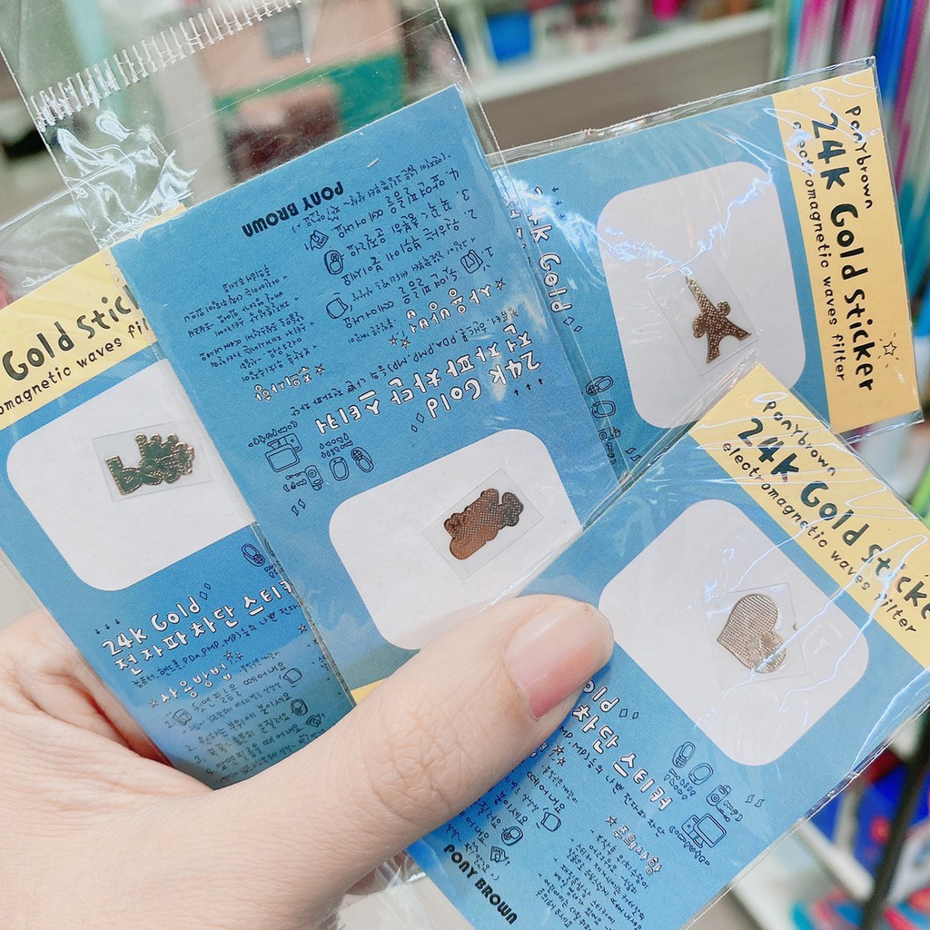 Nhập khẩu từ Hàn Quốc, miếng dán điện thoại được mạ vàng 24k đẹp óng ánh không chỉ là vật trang trí xinh xắn cho dế yêu mà còn giúp bạn bảo vệ sức khỏe với chức năng giảm sóng điện từ.
