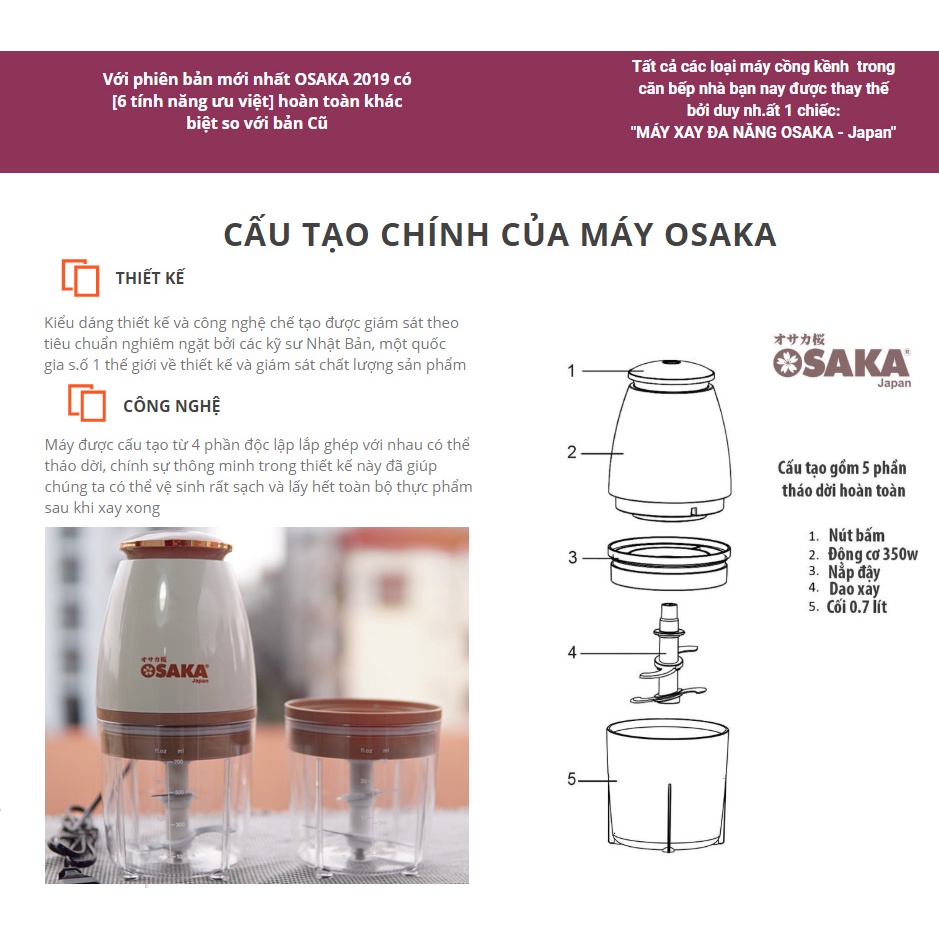 SHOP UY TÍN - HÀNG CHẤT LƯỢNG.Máy Xay Sinh Tố Đa Năng Osaka Japan New (1 Máy Xay + 1 Cốc + 1 Dao Xay) - Hàng Chính Hãng.