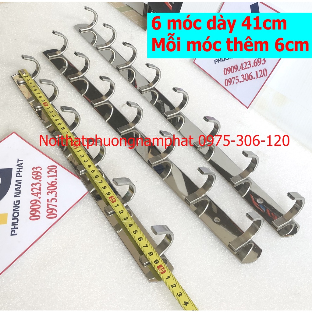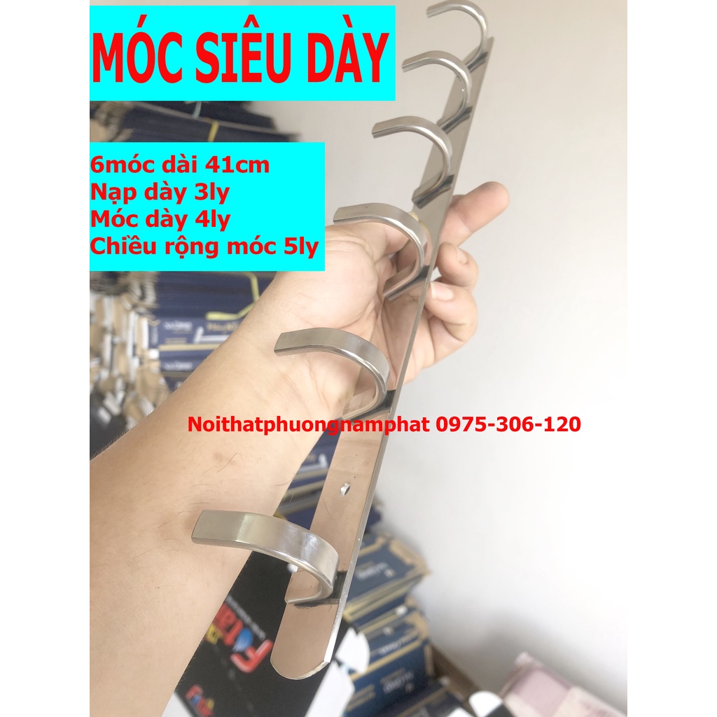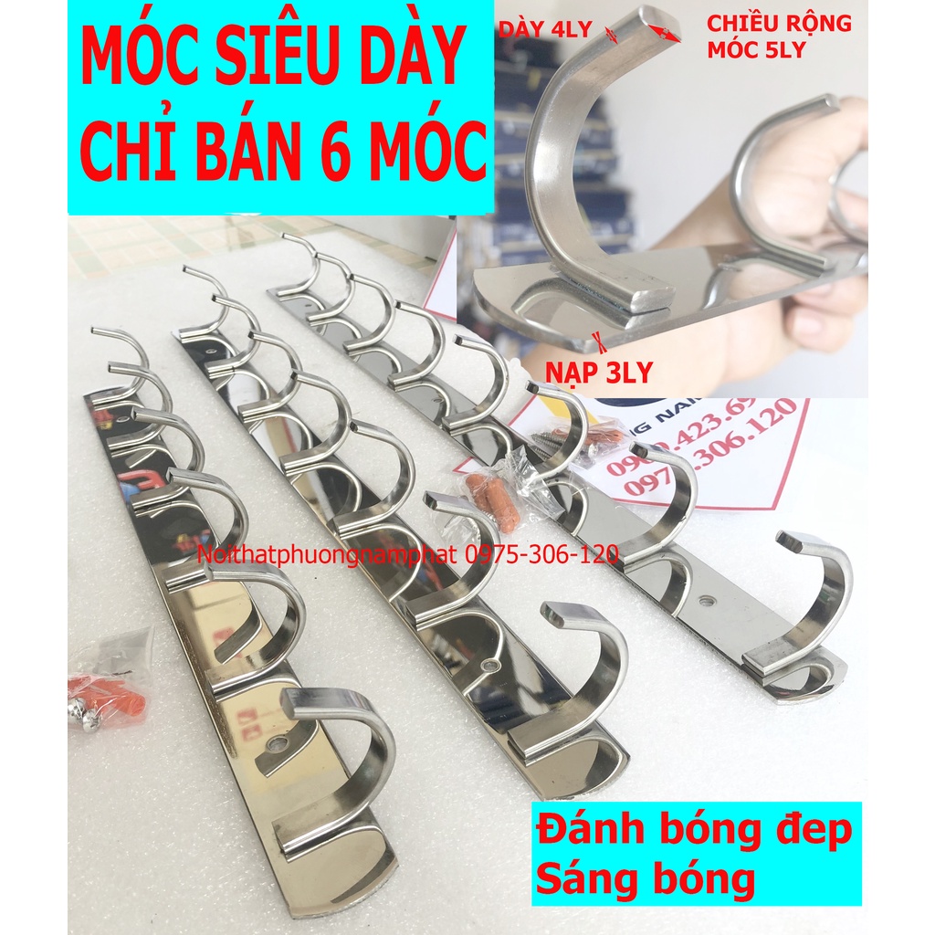 [ĐÁNH BÓNG ĐẸP] Móc Treo Quần Áo móc áo treo Tường 100% INOX MA4 MÓC ÁO DẸT 6 CHẤU loại móc dày cầm nặng tay sáng bóng