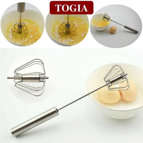 Đánh Trứng Tự Động - Cây Đánh Trứng Inox Có Trục Xoay Tự Động Nhỏ Gọn Tiện Dụng 25cm
