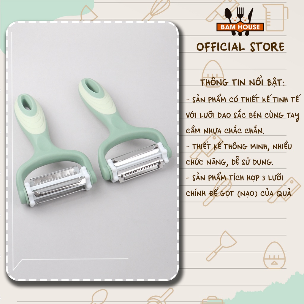 Dao bào 3 lưỡi inox Bam House lưỡi dao xoay nhỏ gọn cao cấp B3L01 - Gia dụng bếpSo với việc dùng dao thông thường để gọt vỏ rau củ và trái cây thì một dụng cụ gọt vỏ chuyên dụng sẽ giúp bạn chế biến và nấu một bữa ăn nhanh hơn, hấp dẫn hơn