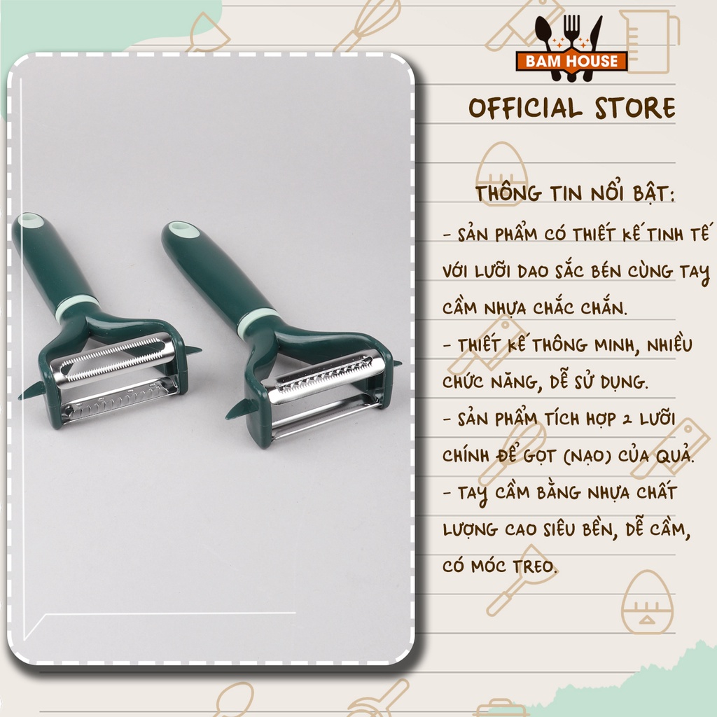 Dao bào 2 lưỡi xanh rêu Bào vỏ Bào sợi Bam House lưỡi thép không gỉ cao cấp BXR04 - Bào vỏ trái cây bào sợi trái cây