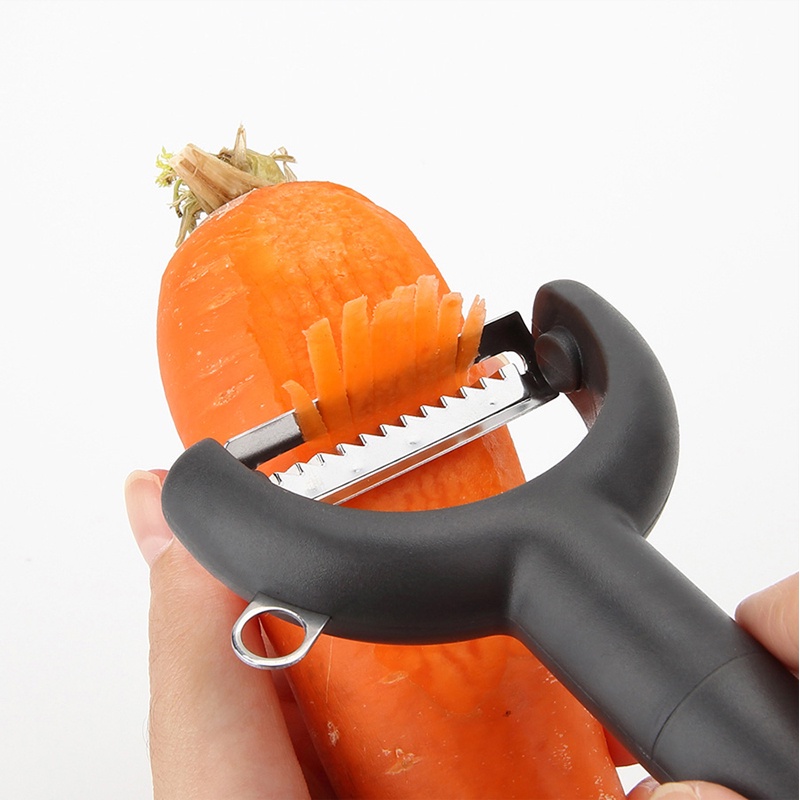 + Dao bào Julienne Y Peeler, lưỡi dao bào hình răng cưa thích hợp để bào sợi rau củ quả nhanh chóng, kể cả với các loại củ quả cứng như cà rốt, bí xanh và các loại khác.