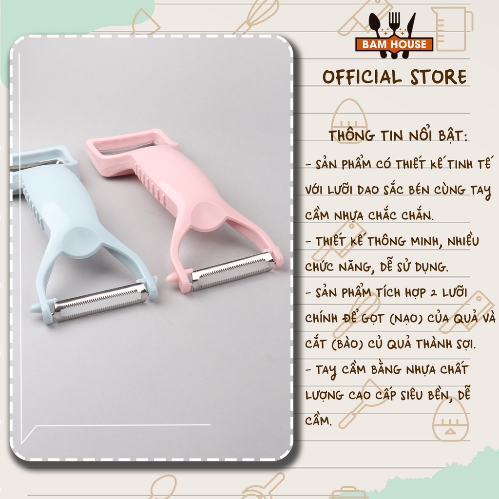 Dao bào đa năng inox Bam House 2 đầu nhiều màu siêu bén cao cấp B2D02 - Gia dụng bếpSo với việc dùng dao thông thường để gọt vỏ rau củ và trái cây thì một dụng cụ gọt vỏ chuyên dụng sẽ giúp bạn chế biến và nấu một bữa ăn nhanh hơn, hấp dẫn hơn