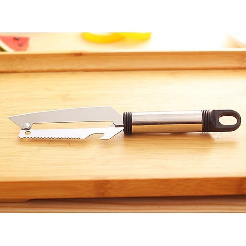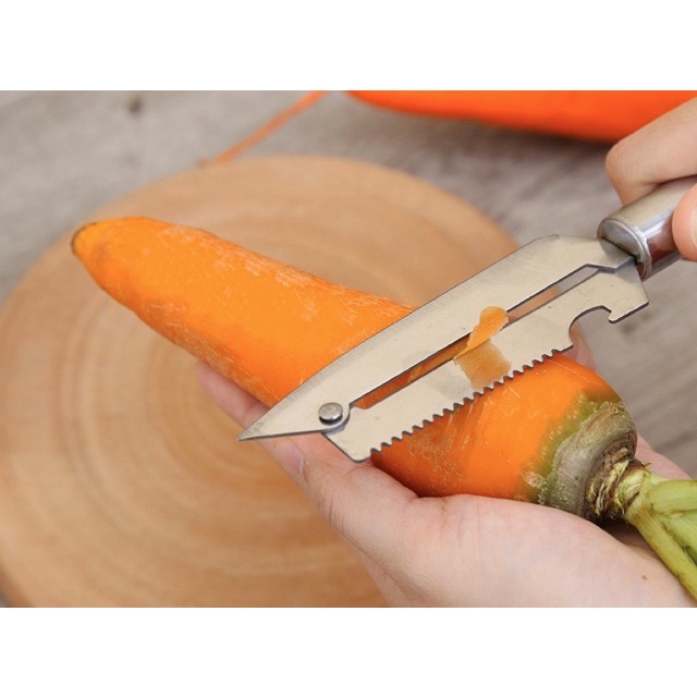 - So với việc dùng dao thông thường để gọt vỏ rau củ và trái cây thì một dụng cụ gọt vỏ chuyên dụng sẽ giúp bạn chế biến và nấu một bữa ăn nhanh hơn, hấp dẫn hơn.- Đặc điểm nổi bật của dao inox đa năng cắt, bào, khui đồ hộp cao cấp: