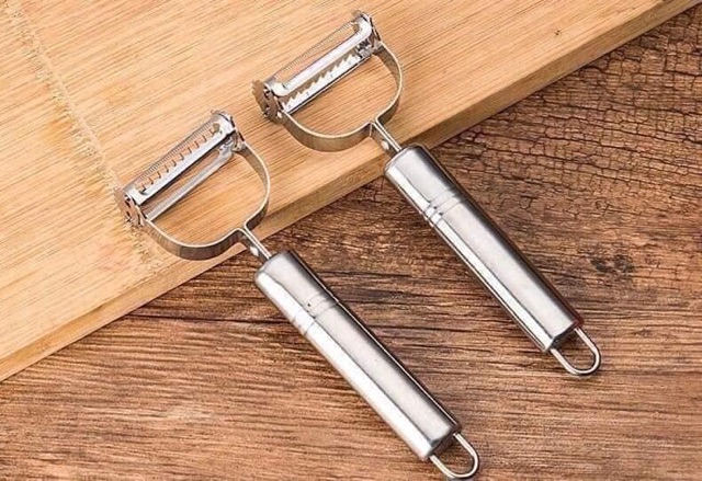 - Nạo gọt rau củ quả inox 2 đầu đa năng dành cho gia đình 1 đầu gọt vỏ - 1 đầu nạo sợi gọt sắc đa năng inox dùng siêu bền.