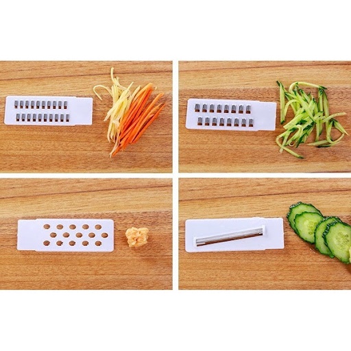 - Nạo đa năng 4 lưỡi dao với 5 chức năng khác nhau: bào sợi to, bào sợi nhỏ, thái lát mỏng... Khiến việc sơ chế thực phẩm của các bà nội trợ trở nên dễ dàng, tiết kiệm thời gian, công sức. Sản phẩm dễ dàng sử dụng cho kết quả thành phẩm đều và đẹp mắt hơn.
