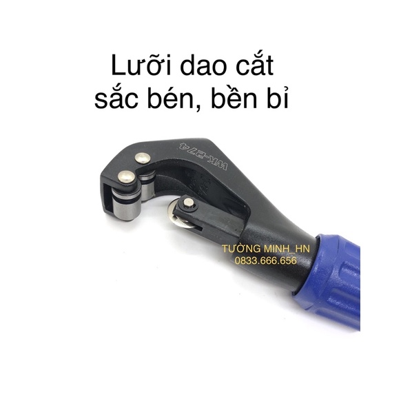 - Lưỡi dao được sản xuất từ hợp kim chống mẻ, giúp lưỡi chắc hơn, bề hơn, sắc bén hơn cho đường cắt ống chuẩn.