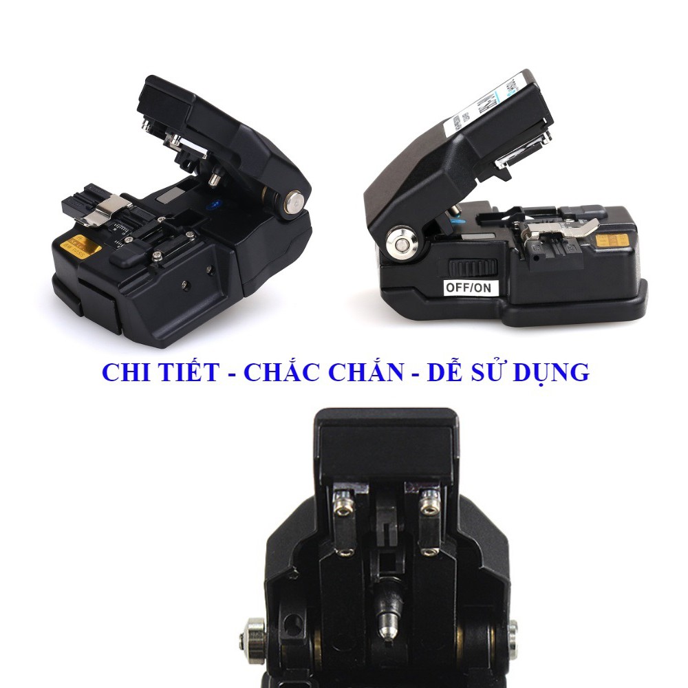 Cắt sợi quang chính xác, không gây vết xước hay góc nghiêng Ứng dụng cho cắt sợi quang đưa vào máy hàn sợi quang hoặc dùng để cắt sợi quang đưa vào Fast Connector Số lần cắt: 48,000 lần (16 vị trí và 3 độ cao có thể điều chỉnh được) Loại dao cắt: loại bán tự động, 3 thao tác cắt, tác động cắt đẩy tay. Công dụng: cắt sợi quang đơn hay cắt ribbon (nhiều sợi quang cùng 1 lúc) + Dây thuê bao quang FTTH