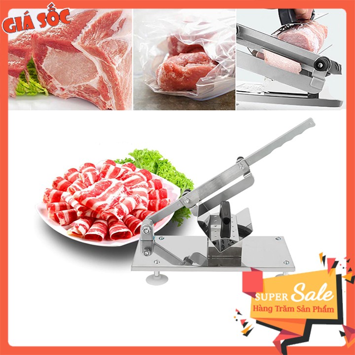 + Máy cắt thịt bằng tay được chế tạo bằng vật liệu inox cao cấp. Máy chuyên dùng thái thịt bò, thịt lợn, thịt cừu, thịt dê, thịt bê, thịt trâu... đông đá.