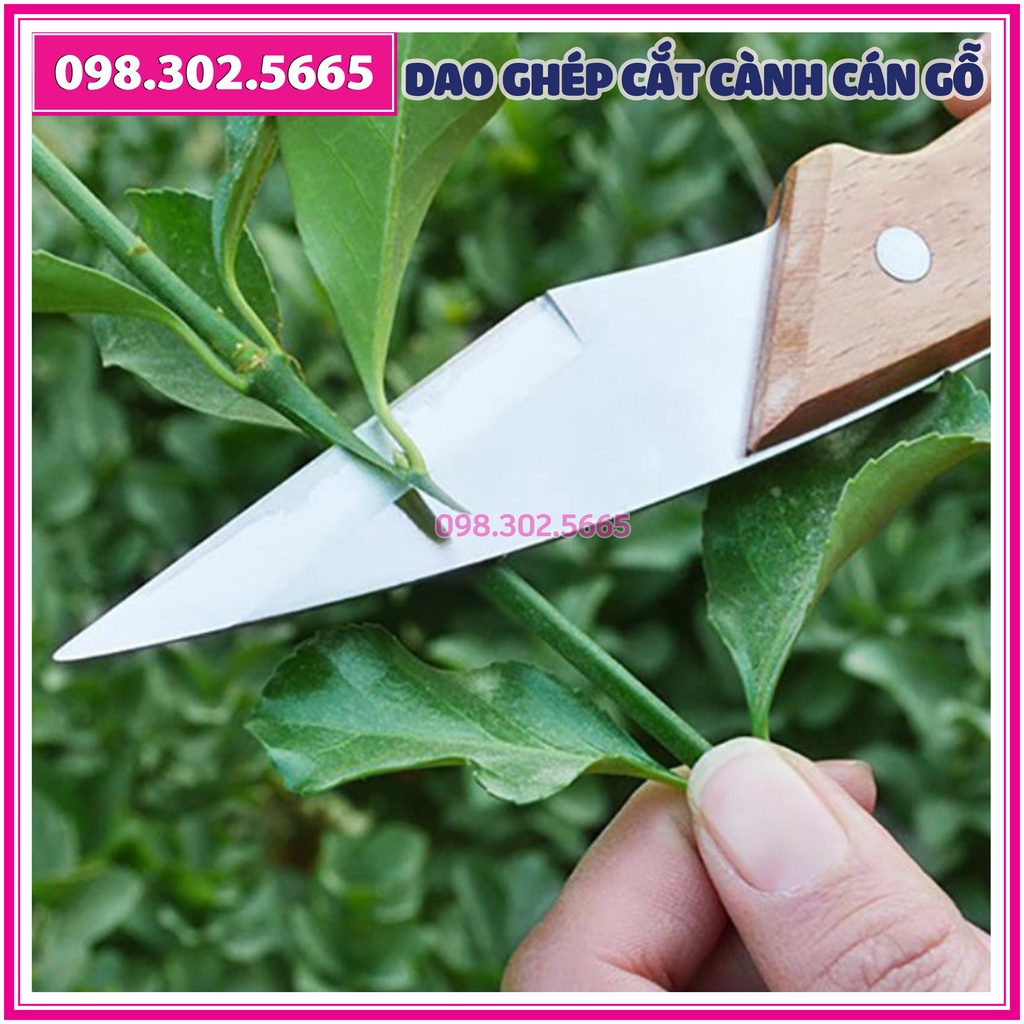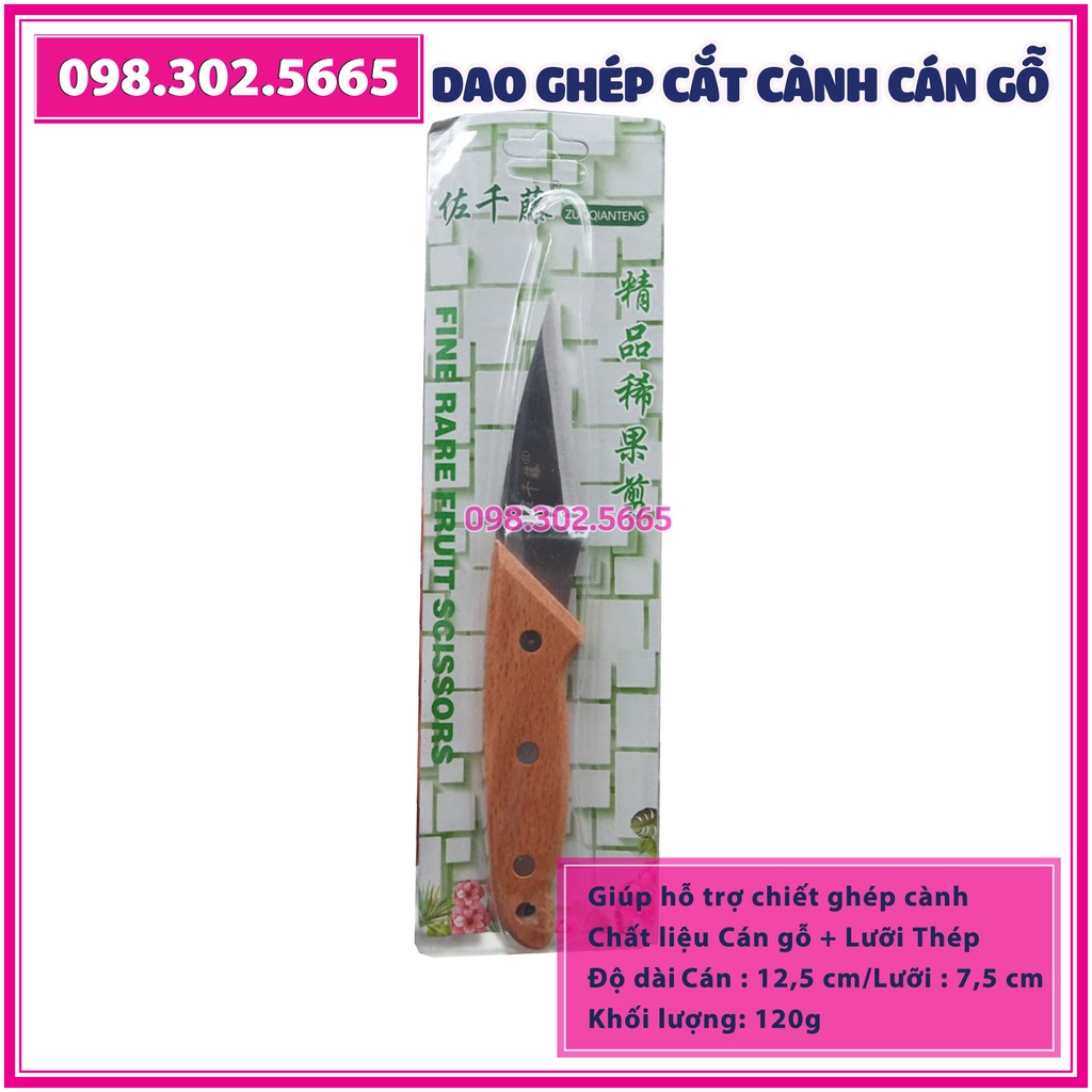 Dao cắt ghép cành cán gỗ dụng cụ hỗ trợ công chiết ghép cành tốt với chi phí hợp lý. Dao ghép cành với cán được làm từ gỗ giúp cầm nắm dễ dàng thao tác sử dụng chính xác, kết hợp với lưỡi chất lượng được mài bén nhọn giúp cắt gọt ngọt hiệu quả. Nhà vườn có thể dùng dao ghép để ghép được hầu hết các loại cây kiểng, bonsai, cây ăn trái,..