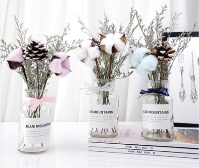 Combo gồm: Lọ thủy tinh + hoa khô cắm trong bình (y hình)