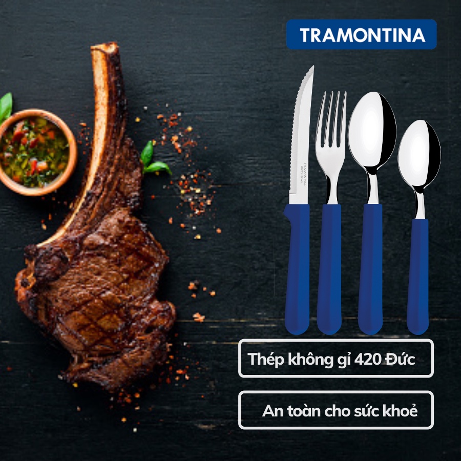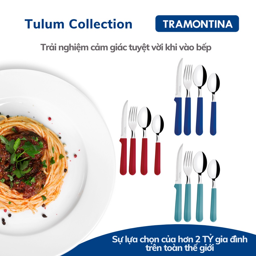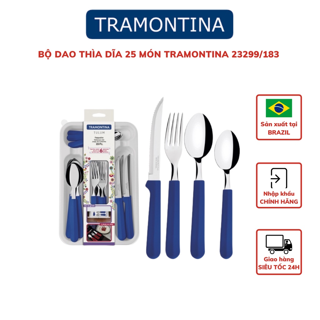 Bộ dao dĩa ăn bít tết Tramontina TULUM TRA23299.183 25 món kèm khay cán nhựa PP cao cấp 3 màu nhập khẩu chính hãng BrazilTramontina là thương hiệu gia dụng hàng đầu của đất nước Brazil với lịch sử hình thành và phát triển hơn 100 năm.