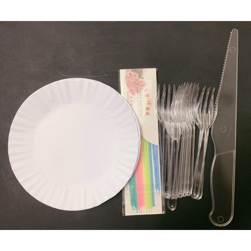 bộ dao dĩa nến đĩa giấy sinh nhật - set dành cho 10 người, set dao đĩa dĩa nến ăn sinh nhậtĐồ làm bánh Dung Lee
