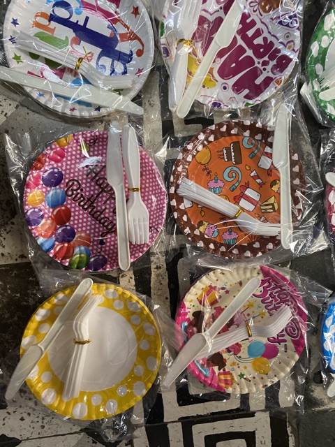 Sản phẩm gồm 1 set dao dĩa đĩa ăn bánh sinh nhật1 set gồm