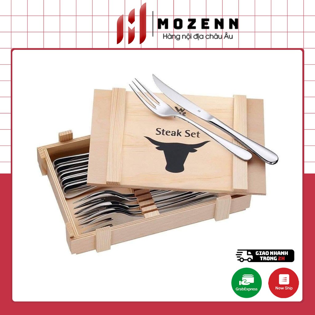 - Set hộp gỗ 12 dao nỉa WMF Steak của Đức (12 món) là bộ sản phẩm không thể thiếu trong gia đình, giúp bạn nâng tầm bữa ăn và phong cách ăn uống thời thượng. Sản phẩm có xuất xứ tại Đức từ thương hiệu đồ dùng gia đình nổi tiếng WMF chuyên sản xuất đồ gia dụng nhà bếp mang chất lượng tốt và bền bỉ cùng tháng năm.