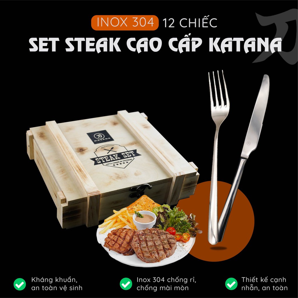 - Dành cho 6 người ăn - thiết kế dao sắc hơn dao ăn thông thường, chuyên cho món beef steak hoặc các món thịt nướng.