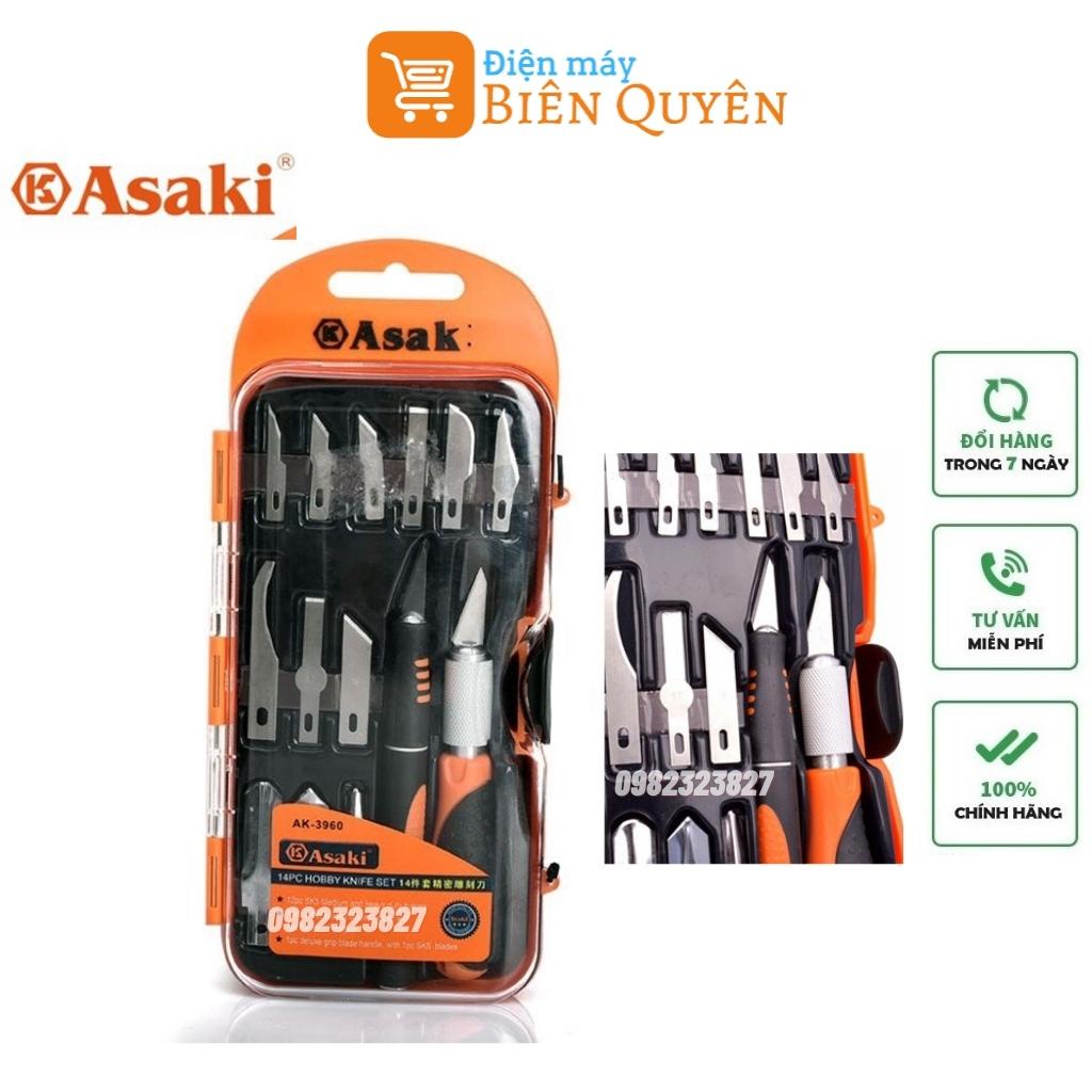 Bộ dao điêu khắc, chạm, trổ, tách, ghép Asaki AK-3960, 14 chi tiết ( Chính Hãng)