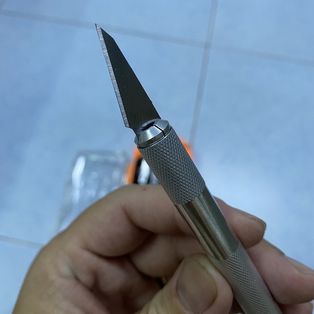 Lưỡi dao bằng thép, cán cầm bằng nhôm và nhựa