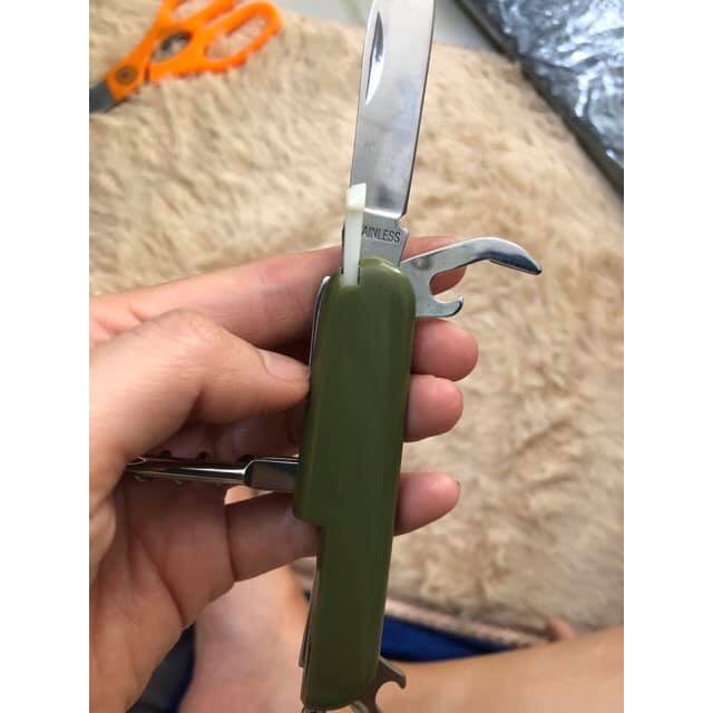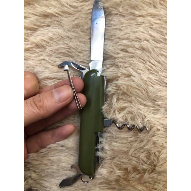 - Công dụng: Dao gồm 8 bộ phận là 8 chức năng khác nhau có thể gấp gọn vào trong thân dao gồm: dao, dụng cụ khui đồ hộp, dụng cụ khui nắp chai, dụng cụ khui nắp rượu vang, tuốc nơ vít (-), tuốc nơ vít (+), cây nhíp, cây xiên. Dao nhỏ gọn, thích hợp dùng mang theo khi đi dã ngoại, pinic, du lịch…