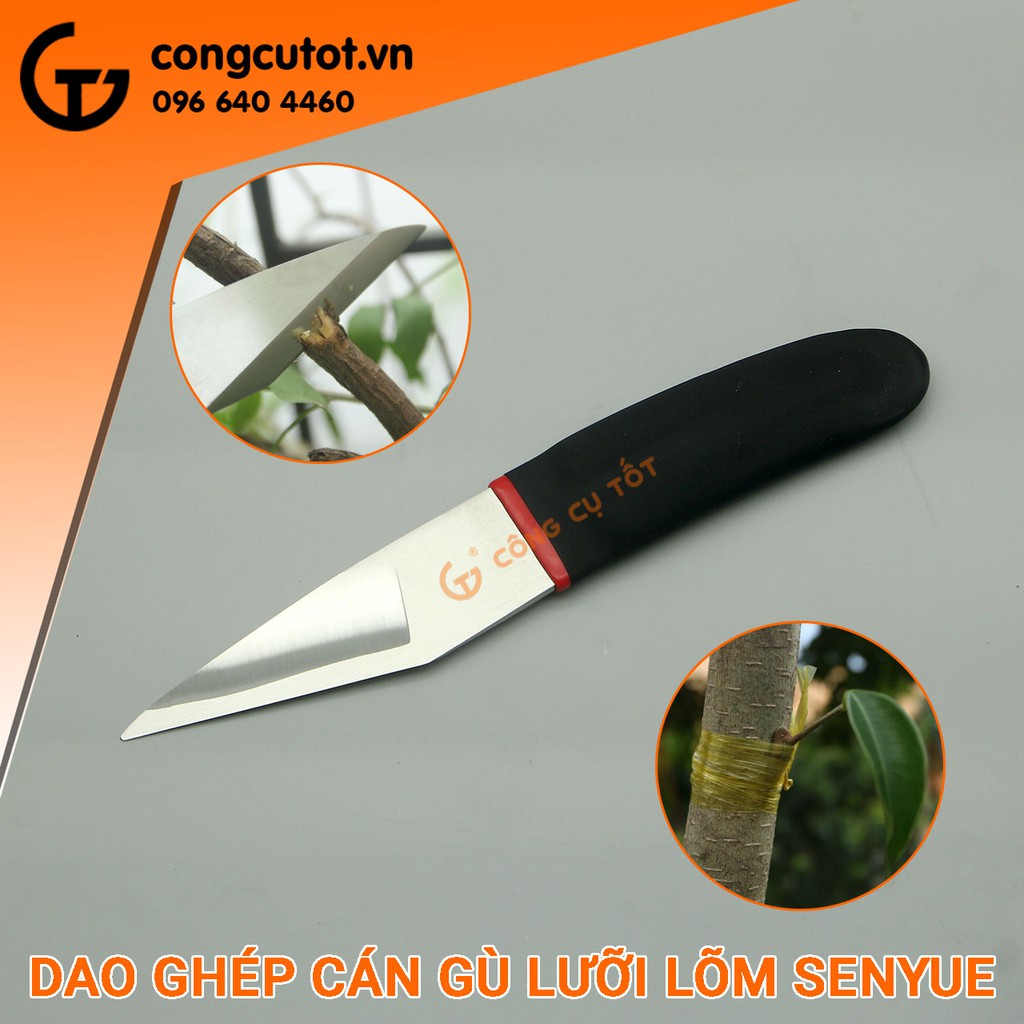 Dao ghép cành cán gù liền khối lưỡi lõm của Senyue là loại dao chuyên dụng dùng trong triết ghép cành cây được làm bằng thép composite SK5 độ cứng HRC62 đảm bảo độ sắc bén và bền bỉ.Ngoài ra dao còn có thể dùng để gọt rau củ quả,điêu khắc hoa quả nghệ thuậtDao chuyên dụng triết cắt ghép cành cây