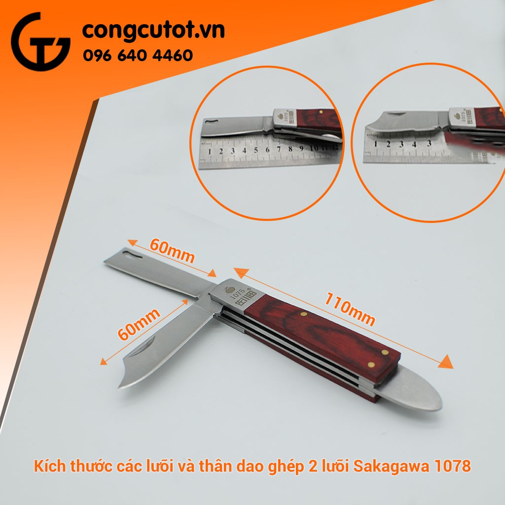 Dao ghép 2 lưỡi Sakagawa 1078 chuyên sử dụng để ghép cây, ghép cành. Với lưỡi thép cacbon SK5 từ Nhật sắc bén, lưỡi dao có thể gấp gọn. Dao ghép 2 lưỡi Sakagawa 1078 đã trở thành sản phẩm tin dùng của nhiều người thợ trong suốt thời gian qua.Một số lưu ý khi sử dụng dao ghép 2 lưỡi Sakagawa 1078