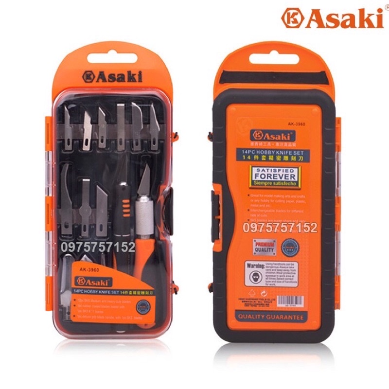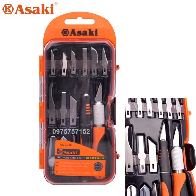 Bộ dao điêu khắc, chạm, trổ, tách, ghép cao cấp 14 chi tiết Asaki AK-3960