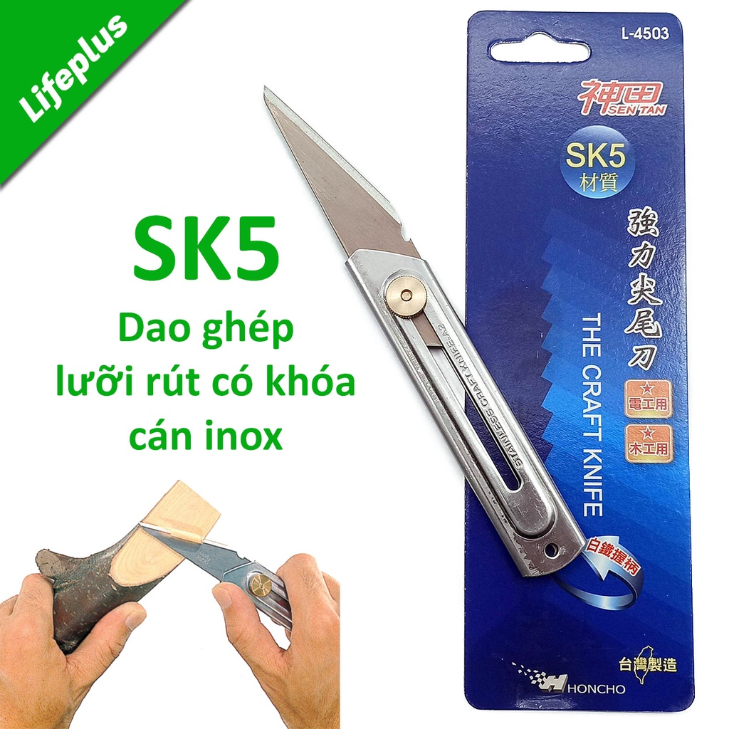 Giới thiệu Dao ghép cây lưỡi rút bằng thép SK5 sắc bén cán inox chốt khóa đồng siêu nhẹ Honcho Đài Loan L4503