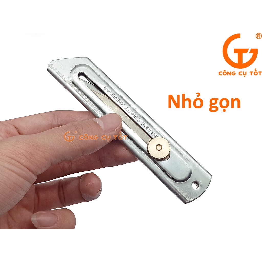 Thân vỏ inox bền bỉ, chống gỉ, chống ăn mòn, mài mòn và rất nhẹ. Với trọng lượng của dao ghép lưỡi rút bằng thép SK5 sắc bén cán inox khóa đồng Honcho Đài Loan L4503 thì người sử dụng sẽ dễ dàng kiểm soát được thao tác chuẩn xác trên mối ghép.